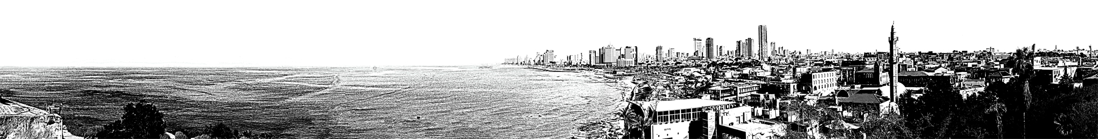 זה קו הרקיע של תל אביב שמשמש לי בסיס לשלט, מבט מסלעי אנדרומדה ועד יד אליהו והרי ירושלים באופק הרחוק: