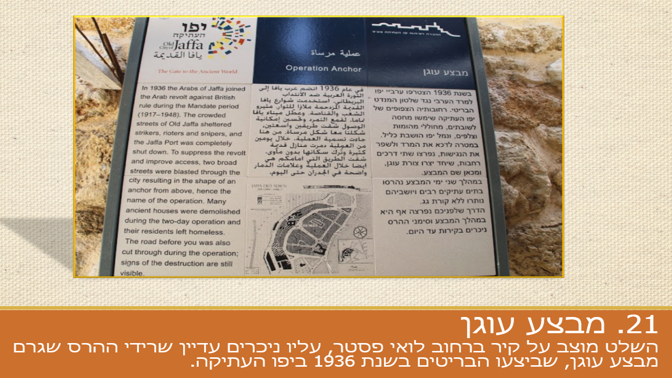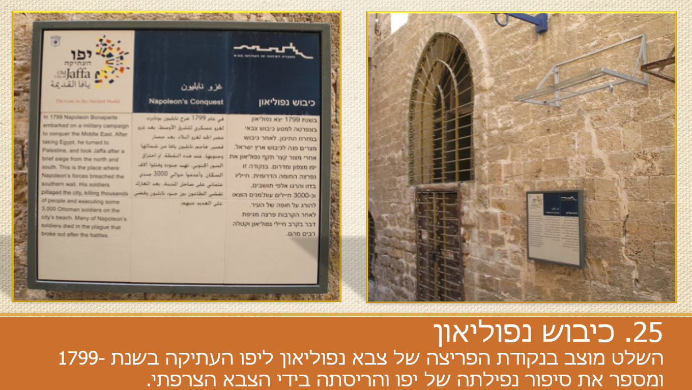פרויקט שלטי התוכן ביפו העתיקה הסתיים כבר לפני חצי שנה, ובשבוע שעבר עשיתי שם סיבוב צילום מסכם. אני כתבתי את כל התכנים, הוספתי חומרים ויזואליים וניהלתי את תהליך הביצוע וההקמה ושותפי לפרויקט היו פיליפ בולקיה – עיצוב, א. טל שחר – ביצוע והקמה וחברת אתת – ניהול כולל.