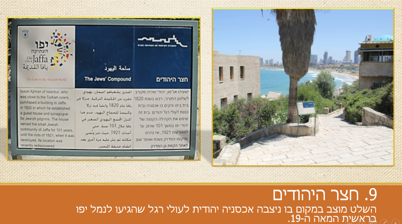 השלטים נראים כאילו היו שם תמיד, כולל חירבוני ציפורים פה ושם וצמחיה שקצת מכסה חלק מהם. נראה שהשלטים ממלאים היטב את יעודם – לספק מידע, תוכן וסיפור לביקור ביפו העתיקה, לתת לו עומק, להוסיף עניין, לדייק בפרטים.
