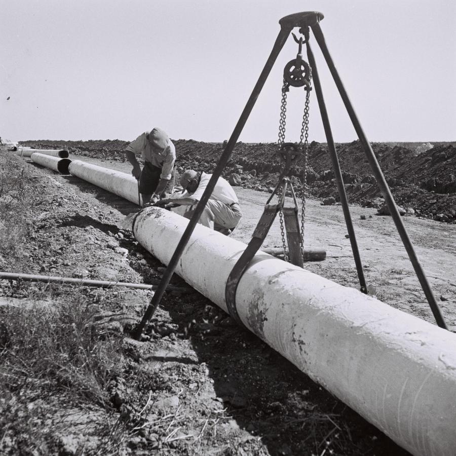 "MEKOROT" WORKERS CONNECTING WATER PIPES NEAR KIBBUTZ NIR AM.
