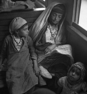 הילדה בצילום היפה של זולטן קלוגר, של המשפחה הכפרית ברכבת בדרכה למחנה העולים בעתלית בשנות ה-40, עונדת תכשיט ובמרכזו בית קמע (מקור: ארכיון ציוני מרכזי):